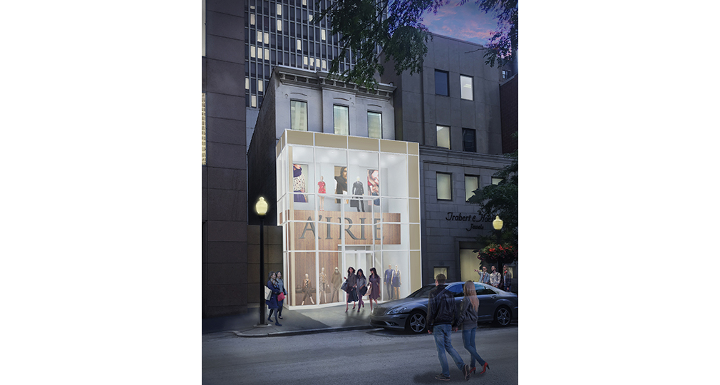 ARCHIDEAS is pleased to announce its collaboration with Baum Realty on a design to reinvigorate a three-story retail building located on a busy stretch of the Oak Street shopping district, just steps from north Michigan Avenue at 113 E Oak Street. ARCHIDEAS previously worked with Baum Realty on the successful renovation of State & Cedar, and anticipates achieving remarkable results here as well. The new design for 113 E Oak Street, at 5,075 SF, features a proposed glass atrium at the front of the existing brick building that is intended to create a generous street front façade. This new expansion will result in an unparalleled opportunity to showcase the tenant’s brand and identity as it invites shoppers into the space with a two story entrance featuring plentiful display space. For further information, please visit Baum Realty’s Listing Page for Property Details and a Property Brochure.